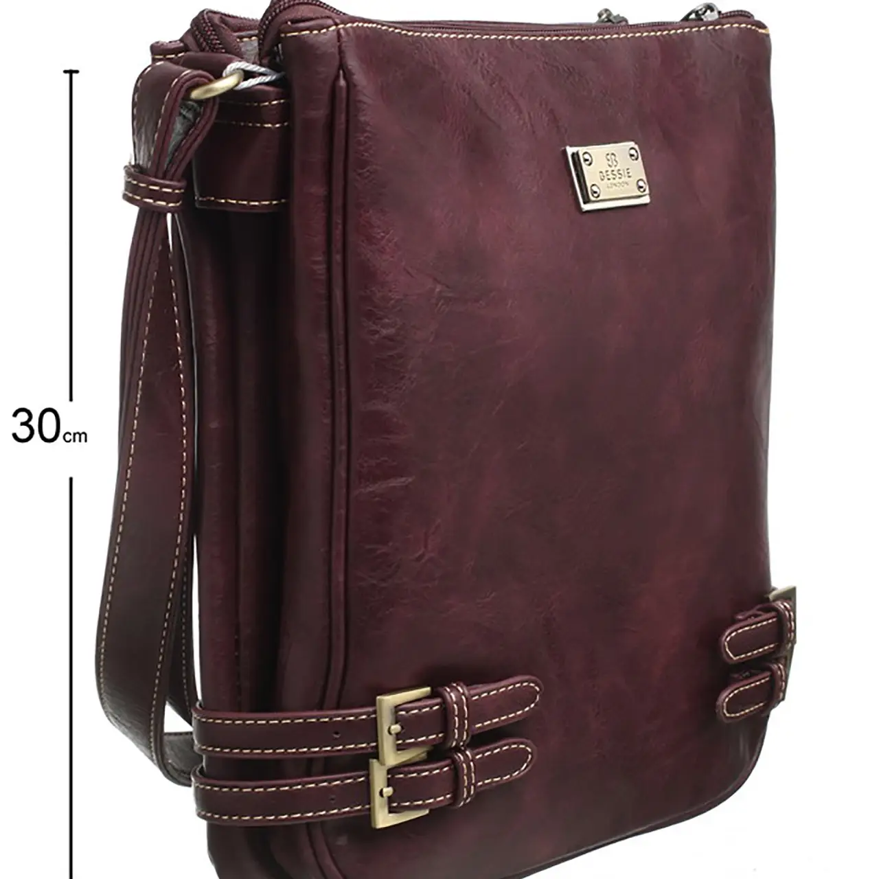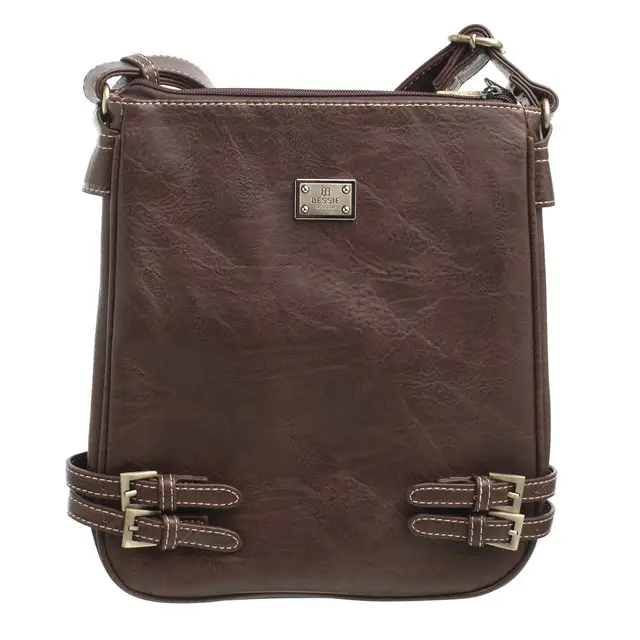 Adopte un style chic et intemporel avec ce sac bandoulière signé Bessie London. Conçu en similicuir de haute qualité, il séduit par sa texture légèrement froissée et ses détails soignés. Sa silhouette épurée est rehaussée par quatre boucles décoratives en métal doré, associées à des surpiqûres contrastantes qui ajoutent du caractère. Doté d’une bandoulière ajustable, il offre un confort optimal pour un port à l’épaule ou en travers du corps. Sa fermeture zippée sécurisée protège vos effets personnels, tandis que son intérieur bien organisé permet de garder vos indispensables à portée de main. Idéal pour le quotidien ou pour compléter une tenue habillée, ce sac allie praticité et élégance.